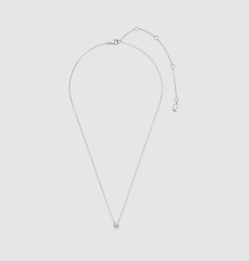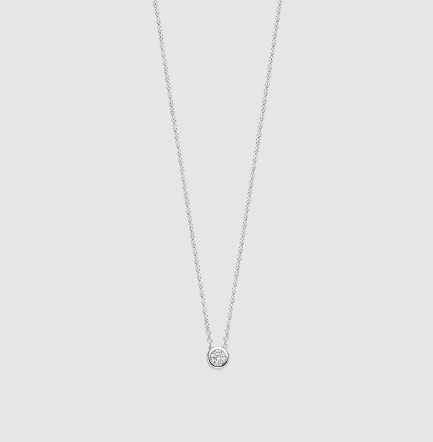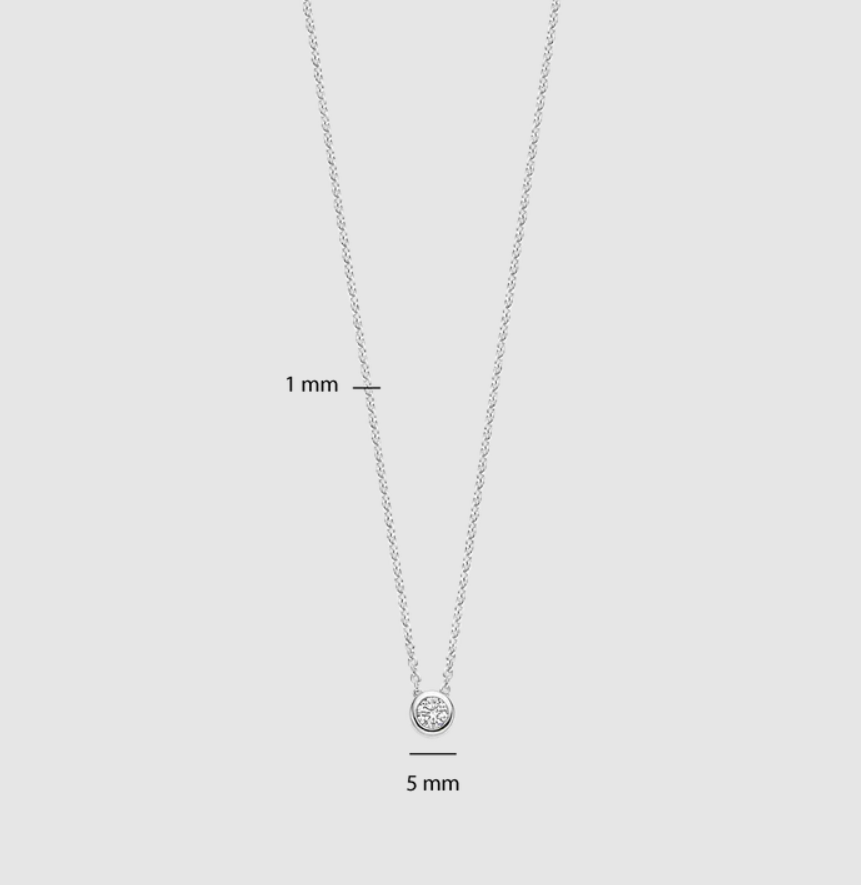 Tento strieborný náhrdelník má centrálne umiestnený zirkónový kameň vsadený do okrúhleho osadenia. Jemný dizajn vytvára rafinovaný akcent na výstrihu, pričom zirkón jemne zachytáva a odráža svetlo. Okrúhle osadenie umocňuje nadčasový a elegantný vzhľad náhrdelníka.