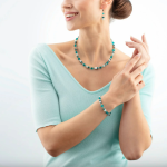 Náramok zaujme kombináciou tyrkysovo modrej a bielej, ktoré sú harmonicky doplnené o lesklé detaily v odtieňoch striebra a jemné prvky z brúseného skla Swarovski. Pre kontrast je doplnený o tmavšie tóny v podobe hematitu. Kockové tvary, typické pre štýl GeoCUBE, vytvárajú geometrický a sofistikovaný efekt, ktorý je zároveň moderný a univerzálny. Náramok sa ľahko prispôsobí vďaka nastavitelnej dĺžke 18,5 cm o 3 cm, čo zaručuje pohodlné nosenie.
