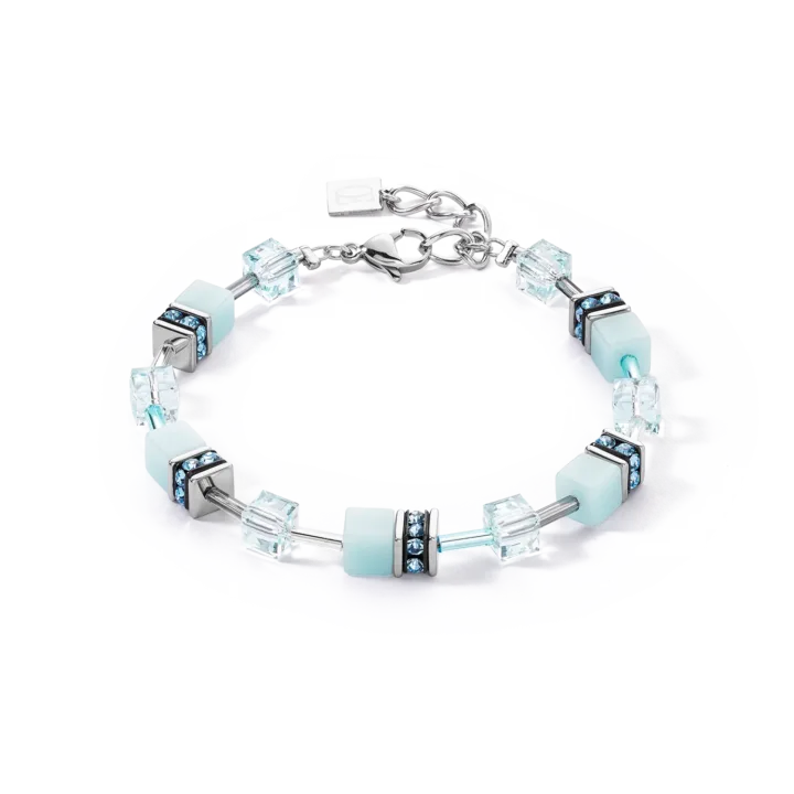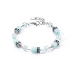 Náramok vyniká kombináciou striebornej ušľachtilej ocele a jemných, ľadovo modrých prírodných kameňov a krištáľov. Lesklé krištály a prémiové sklo Swarovski v ľadovo modrých odtieňoch, vytvárajú oslnivý efekt pri každom pohybe. Strieborné prvky dokonale dopĺňajú modré tóny a čisté geometrické tvary.