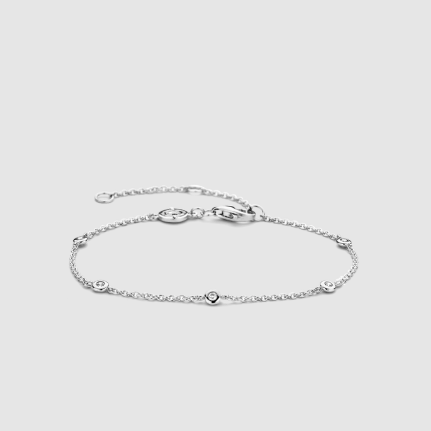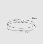 Tento strieborný náramok sa pýši prúdom bielych kubických zirkónov. Dôraz kladie na jemnosť a decentnosť. Jeho bezpečný zámok je navrhnutý tak, aby ste tento kúsok mali stále pri sebe. Je nastaviteľný, čiže pri jeho dĺžke 16 cm je možné predĺženie o 4 cm.