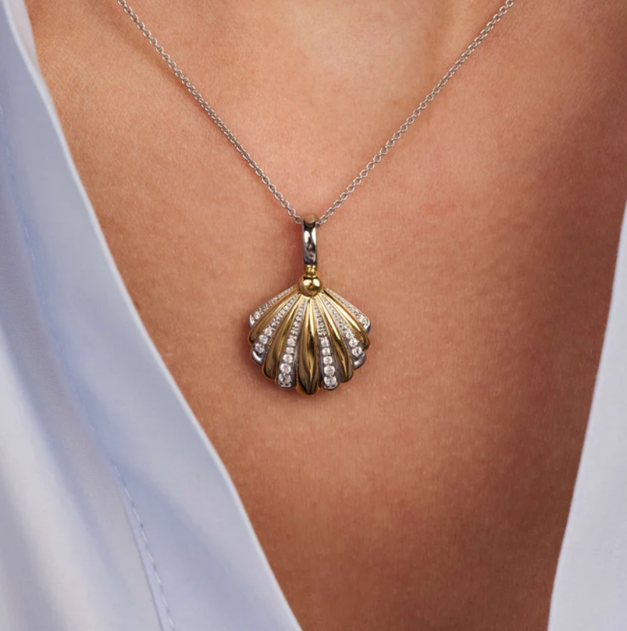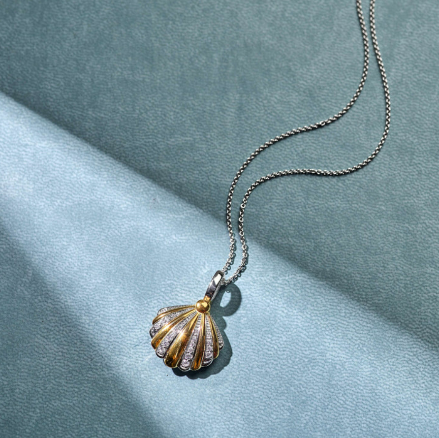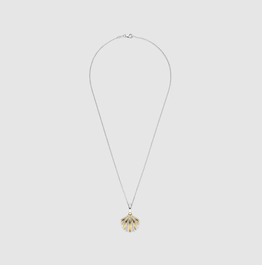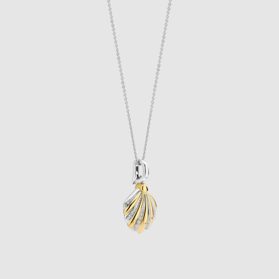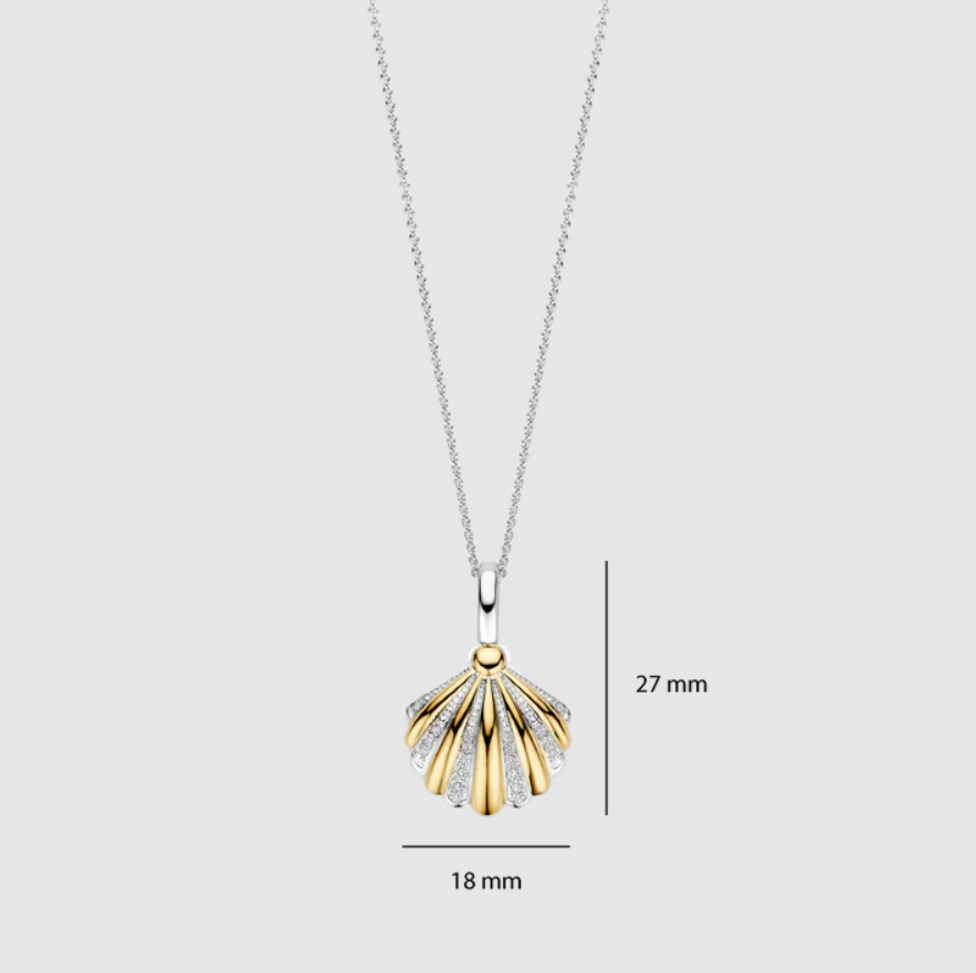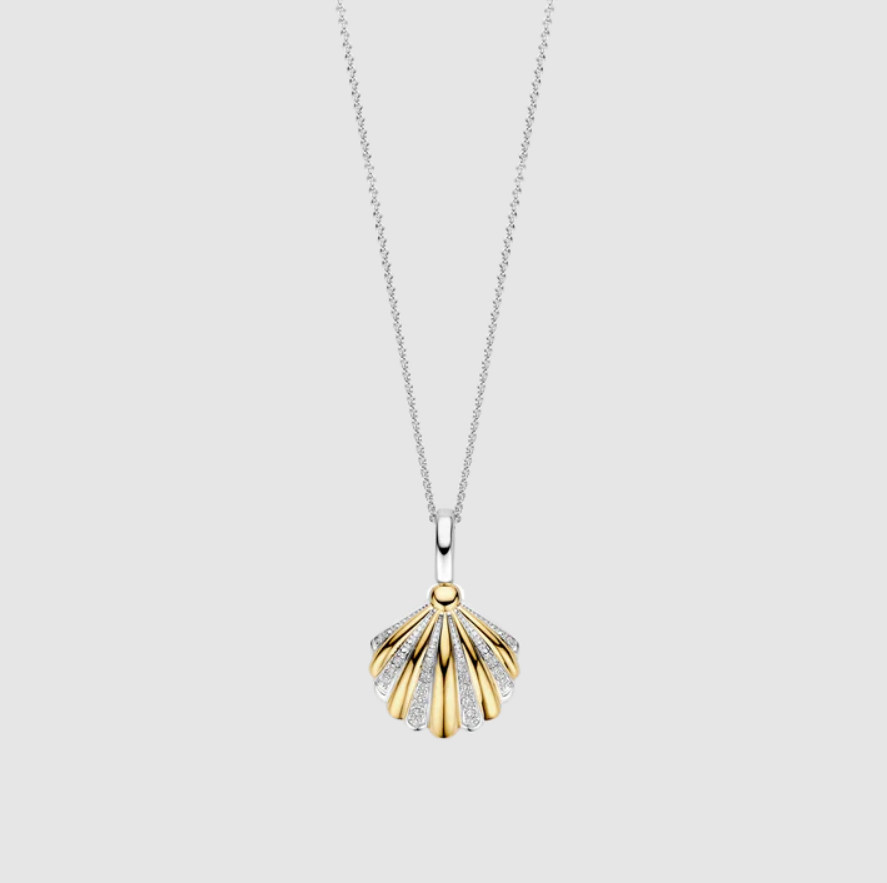 Prívesok s hlbín mora kombinuje detaily z 18-karátového zlata vermeil s trblietavými zirkónmi, ktoré zachytávajú svetlo a vytvárajú svieži letný nádych. Vrstvený tvar mušle dodáva hĺbku, vďaka čomu je tento náhrdelník skutočným kúskom. Dodáva sa s tenkou striebornou retiazkou, ktorá elegantne spočíva pozdĺž výstrihu. Vďaka zapínaniu na klip sa dá prívesok s mušľou ľahko zložiť a nosiť na iných náhrdelníkoch TI SENTO alebo sa môže kombinovať s viacerými príveskami pre personalizovaný vzhľad. Mušľa symbolizuje leto, slobodu a more, vďaka čomu je tento náhrdelník s príveskom perfektným doplnkom do kolekcie šperkov pre teplé počasie.