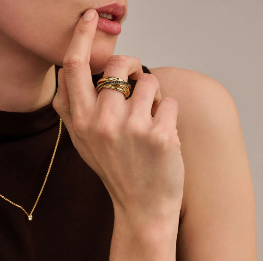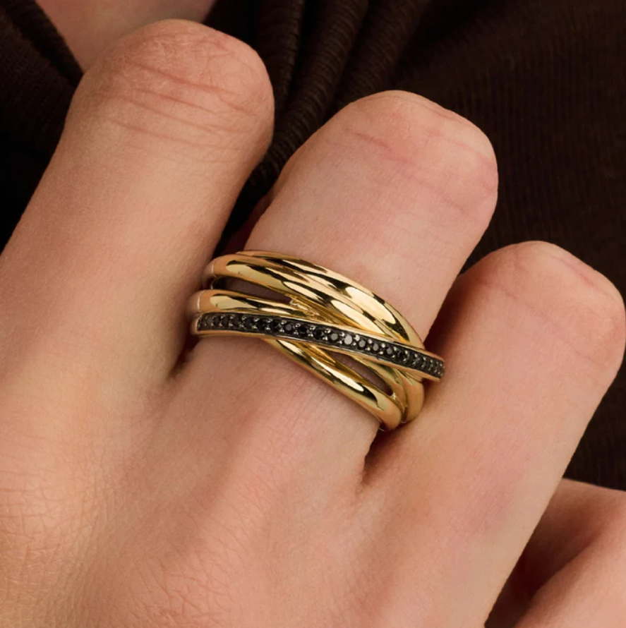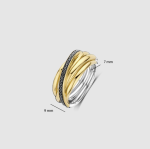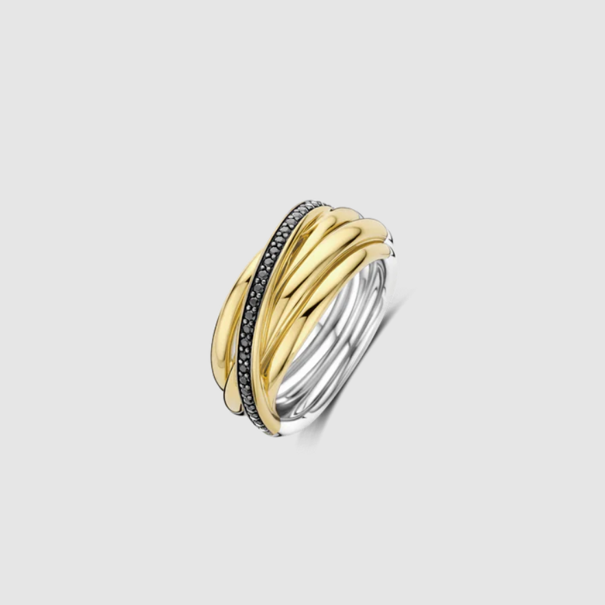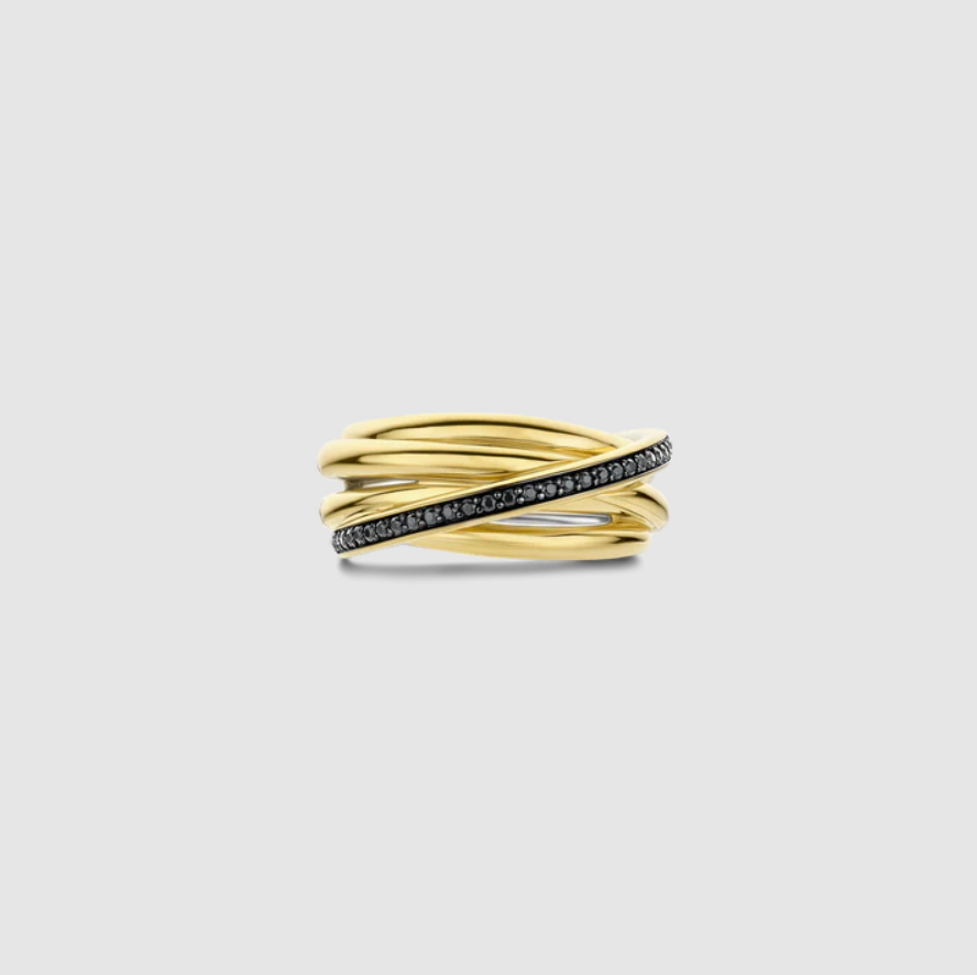 Kolekcia Circle & Cross-Over je už roky bestsellerom v TI SENTO. Zaoblené tvary a pretínajúce sa línie vytvárajú viacvrstvovú, sochársku siluetu, ktorá pôsobí nadčasovo s moderným nádychom. Noste tento prsteň samostatne ako výrazný kúsok alebo ho skombinujte s inými prsteňmi pre viacvrstvový vzhľad. Vďaka crossover dizajnu a kombinácii zlatej a čiernej farby sa tento prsteň bez námahy hodí na denné aj večerné nosenie.