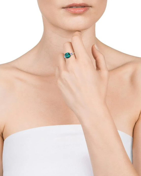 Zaujímavý dámsky prsteň z kvalitnej ocele so zeleným krištálom.